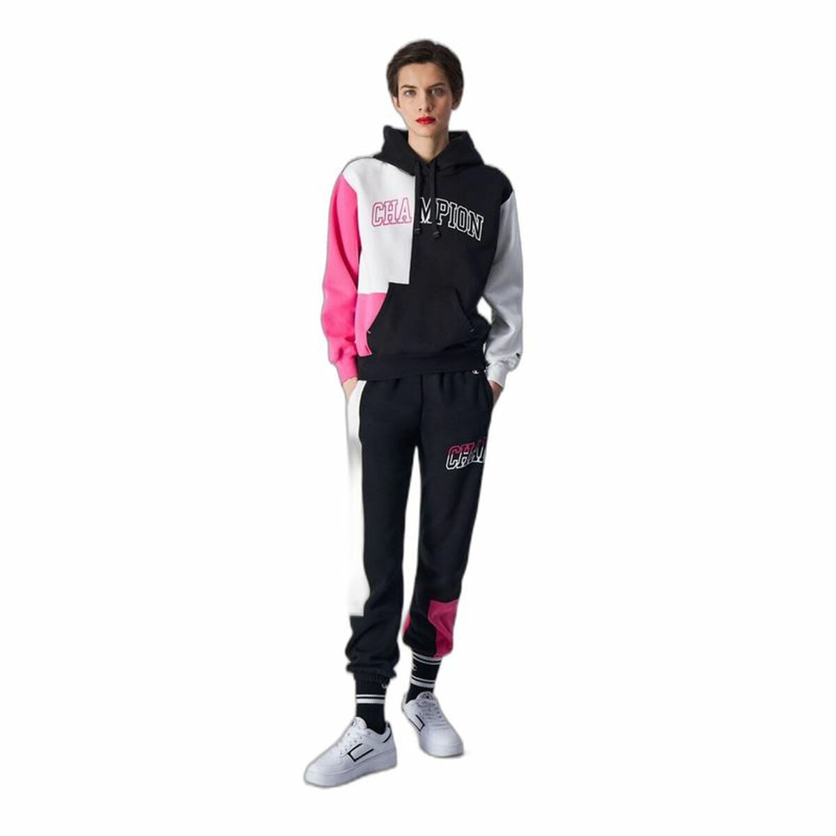 Sudadera con Capucha Mujer Champion Legacy Blanco Rosa Negro