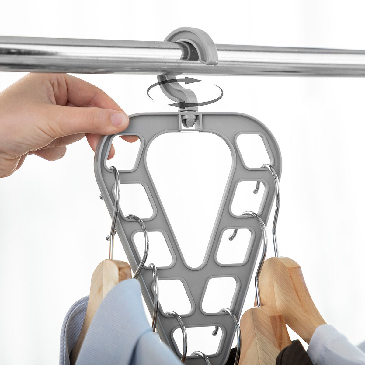Estos organizadores de perchas permiten una mayor capacidad de almacenamiento de ropa. Las perchas se pueden colocar en forma de cascada con una mínima separación, favoreciendo el almacenaje de una mayor cantidad de prendas ocupando un espacio menor.