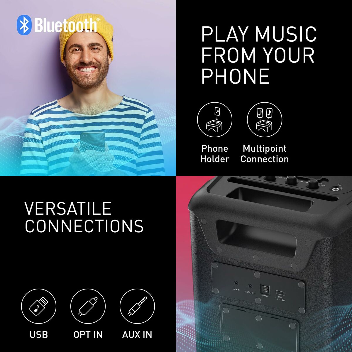 El altavoz Panasonic SCBMAX5EK de 75 W es un sistema de sonido compacto diseñado para ofrecer una experiencia auditiva de calidad con un sistema de salida de audio de 2.1 canales, lo que significa que incorpora dos altavoces estéreo y un subwoofer para proporcionar un mayor rango dinámico y unos graves profundos. Disponible en colores negro y gris, este equipo combina tanto conectividad inalámbrica como alámbrica, permitiendo una conexión versátil a múltiples dispositivos. Destaca la integración de Bluetooth, que facilita la reproducción sin cables desde smartphones, tablets o cualquier otro dispositivo compatible, ofreciendo libertad de movimiento sin perder calidad sonora. Con una potencia estimada de 75 W RMS, este altavoz es capaz de llenar espacios de tamaño medio con un sonido claro y definido, ideal tanto para música como para contenido audiovisual. A pesar de su robusta construcción, presenta un peso manejable de 19,8 kg, lo que garantiza estabilidad y calidad en la emisión sin sacrificar portabilidad en entornos domésticos o pequeños eventos. Cuenta con una autonomía de hasta 9 horas, lo que lo hace apto para sesiones prolongadas sin interrupciones derivadas de la energía, especialmente útil en ambientes sin acceso directo a la red eléctrica. Cabe destacar que no incorpora función de radio FM, enfocándose exclusivamente en fuentes digitales y conexiones directas. En conjunto, el Panasonic SCBMAX5EK es un altavoz que combina potencia, diseño y opciones de conectividad modernas para quienes buscan un equipo fiable y versátil dentro del segmento de sistemas de sonido de gama media.
