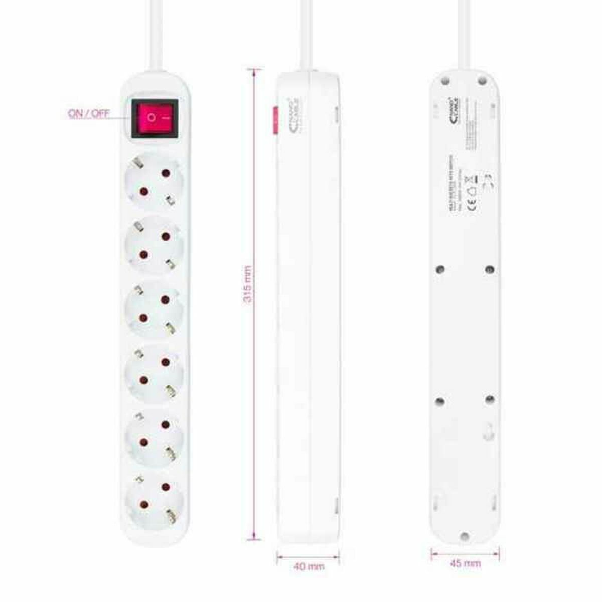 La regleta NANOCABLE modelo 10.37.0006 es un accesorio eléctrico práctico y seguro diseñado para ofrecer conexión simultánea a múltiples dispositivos. Esta regleta cuenta con 6 tomas de corriente con toma de tierra, compatible con enchufes tipo F y enchufes EU, lo que garantiza versatilidad para conectar diversos aparatos eléctricos en instalaciones domésticas o profesionales dentro del mercado español. Está fabricada en materiales resistentes, incluyendo poliéster, con un diseño compacto de 315 x 40 x 45 mm y color blanco que se integra fácilmente en diferentes ambientes. Su cable tiene una longitud de 1,4 metros, proporcionando flexibilidad para ubicar la regleta sin limitaciones cercanas a la toma de corriente. Soporta una máxima potencia total de 3.680 W a una tensión de 250 V y 50 Hz, adecuada para la mayoría de dispositivos electrónicos y electrodomésticos de uso común. Además, incorpora un interruptor de encendido y apagado, facilitando el control del suministro de energía y contribuyendo a un uso eficiente y seguro. Cuenta con protección infantil, certificaciones europeas de calidad y seguridad como CE, RoHS, GS y REACH, que avalan su homologación y cumplimiento normativo para garantizar un producto fiable y conforme a los estándares actuales. Este modelo destaca por su equilibrio entre funcionalidad, robustez y cumplimiento normativo, orientado a usuarios que requieren una solución práctica para ampliar puntos de alimentación con carácter seguro y ordenado. Su diseño y prestaciones la convierten en una opción eficaz para gestionar múltiples enchufes con confianza.