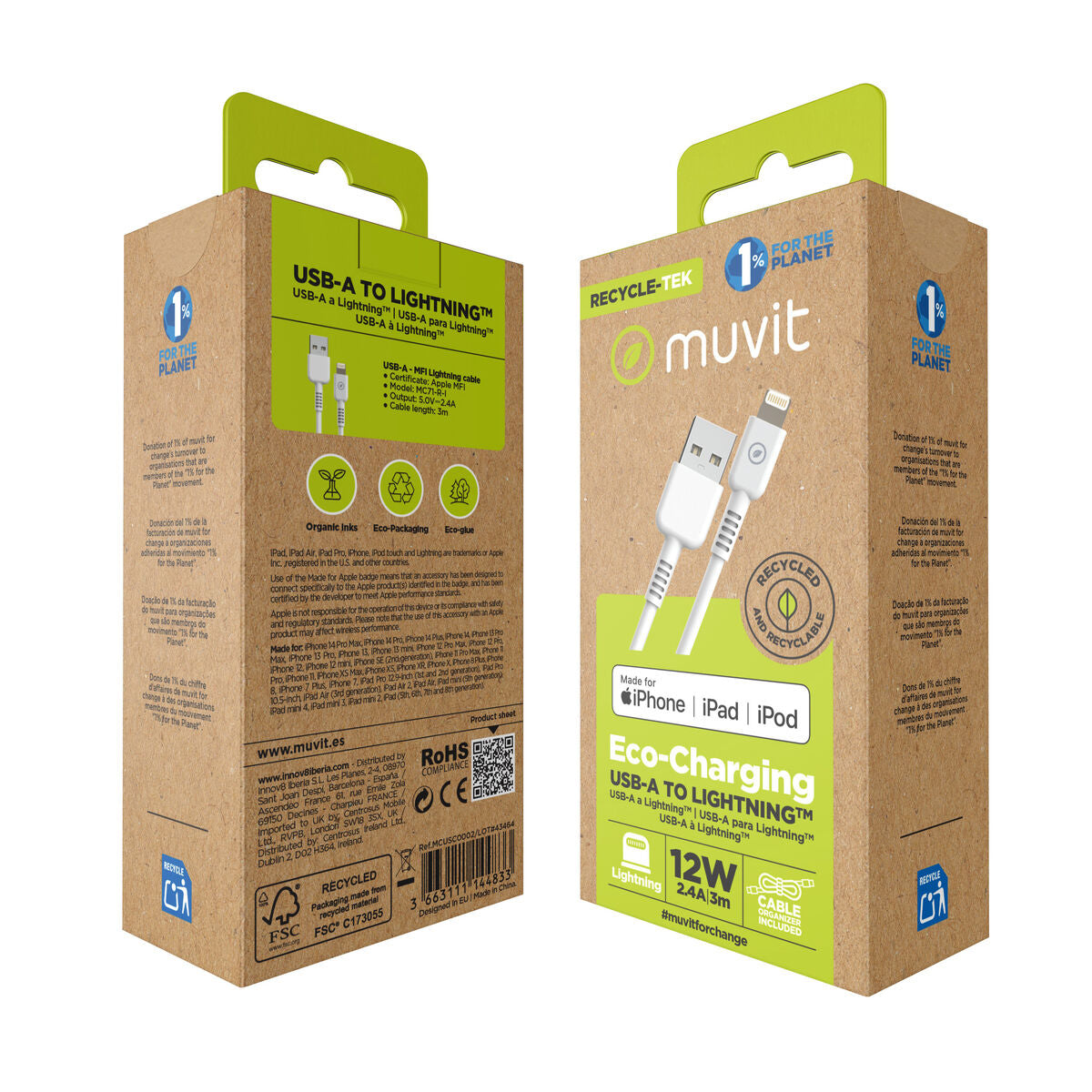 muvit for change cable USB a Lightning MFI 2,4A/12W 3m blanco
